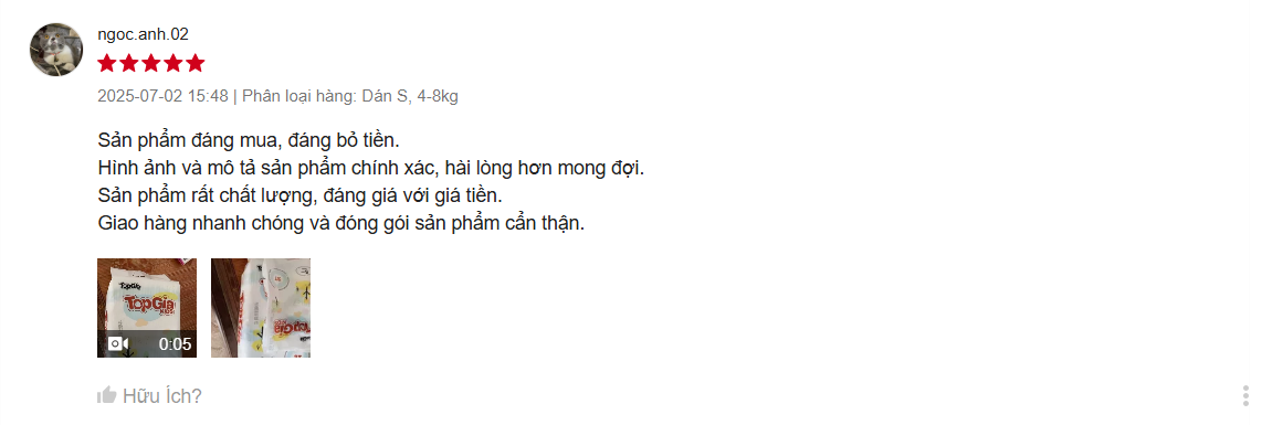 Thông qua những thông tin bên trên, chắc hẳn các mẹ đã biết bỉm Topgia có tốt không. Nếu còn chưa thật sự an tâm về sản phẩm, mời mẹ theo dõi một vài phản hồi thực tế trong hàng ngàn khách hàng đã sử dụng sản phẩm ở dưới đây: