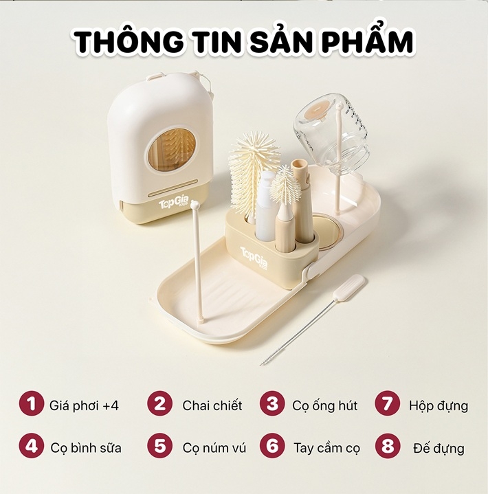 - Gọn gàng – sạch sẽ – dễ bảo quản: Có hộp đựng và giá phơi giúp cọ luôn khô thoáng.