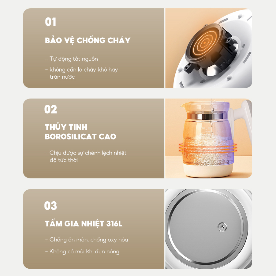 Không lo chập cháy hay cạn nước khô bình, máy sẽ tự động ngắt điện để bảo vệ thiết bị và an toàn cho người sử dụng.