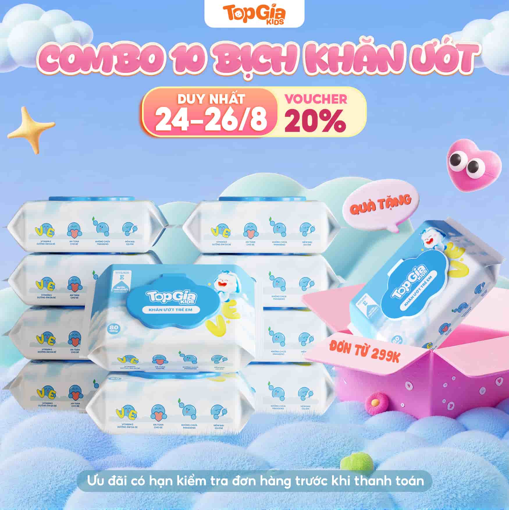 MUA BẤT KỲ SẢN PHẨM NÀO TỪ ĐƠN 299K, TẶNG NGAY 1 BỊCH KHĂN ƯỚT PHIÊN BẢN NÂNG CẤP!