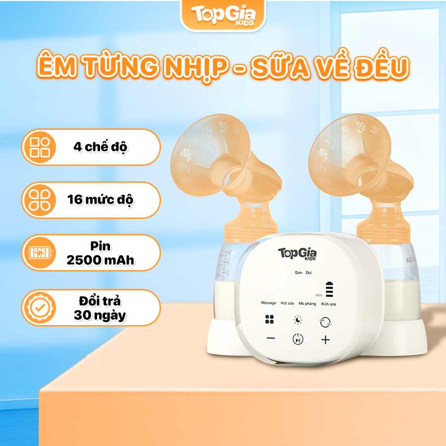Với các mẹ đang cho con bú, máy hút sữa điện đôi của TopgiaKids là một giải pháp hoàn hảo. Máy có chế độ hút êm ái, không đau rát, nhiều cấp độ phù hợp với từng giai đoạn tiết sữa. Đặc biệt, máy còn tích hợp chế độ massage giúp sữa xuống đều.